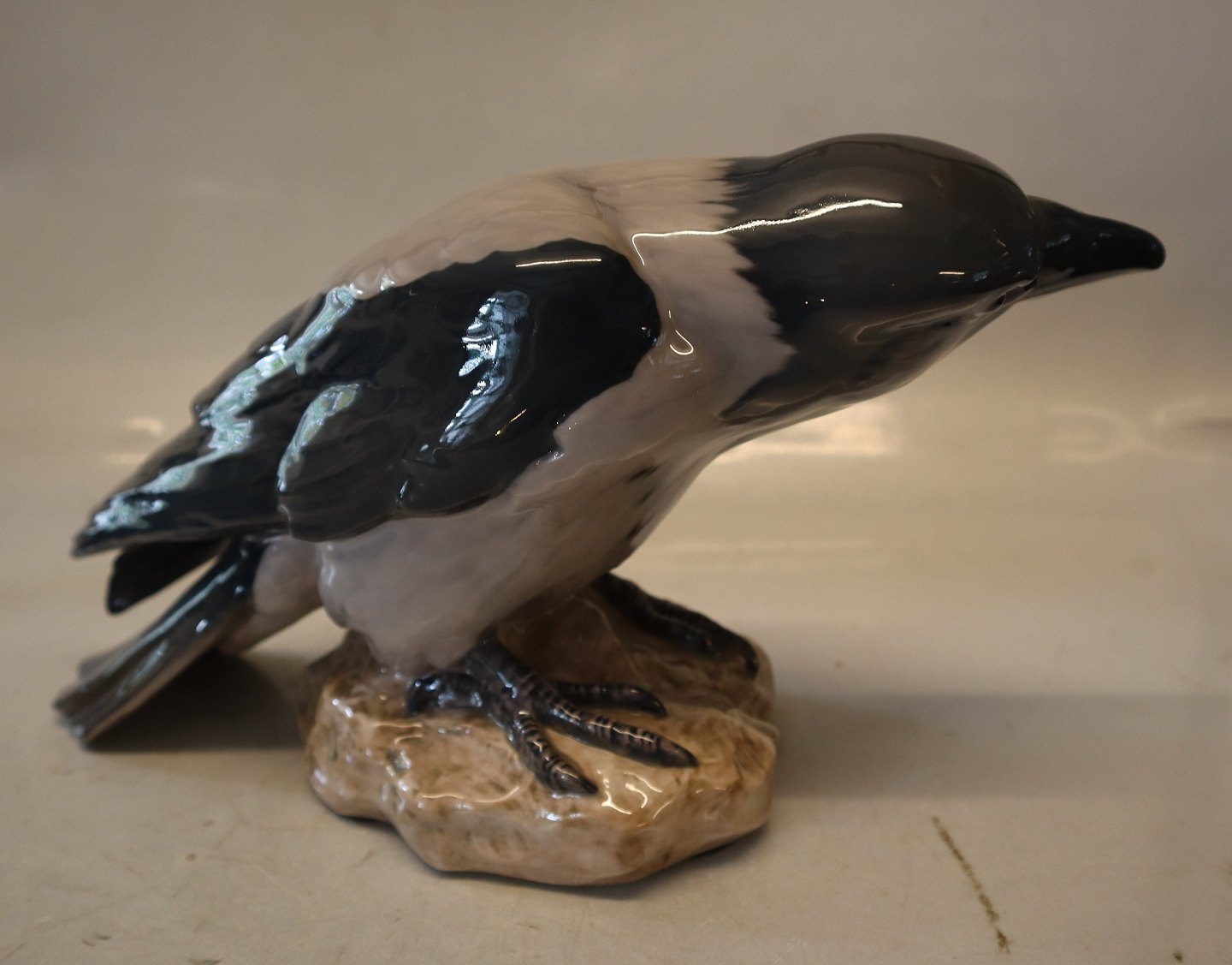 Description: Bing and Grondahl Bird B&G 1714 Large Crow Design Dahl Jensen 17 x 33 cm Marked with the three Royal Towers of Copenhagen. In mint and nice condition
