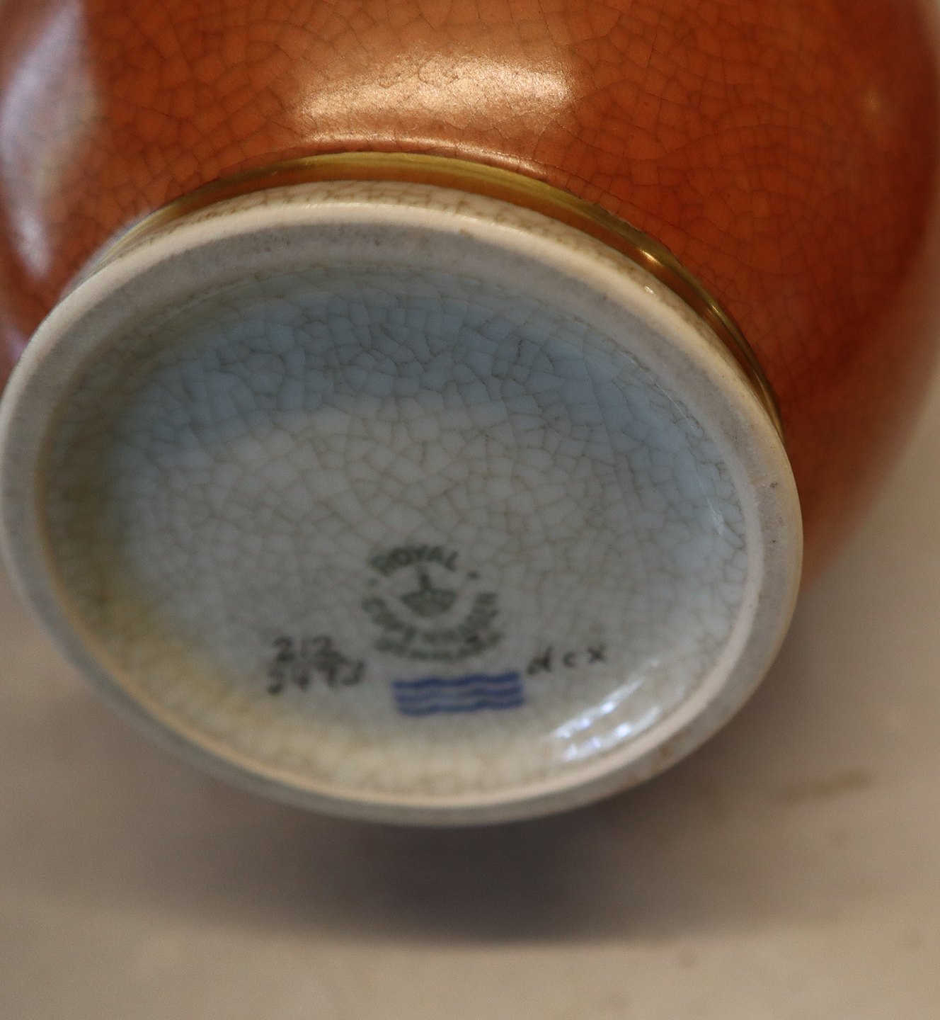 212-3473 Kgl. Orange vase med gråt og guld 25 cm Kongelig Dansk Craquelé, Craquele
