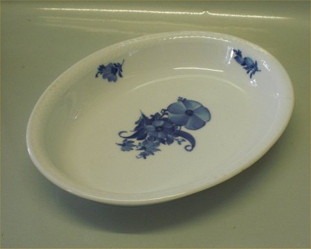 Beskrivelse: Royal Copenhagen Blå Blomst Flettet 8133-10 Salatfad, ovalt 28,8 cm 1. sort med brændingsfejl under glasuren. I fin stand