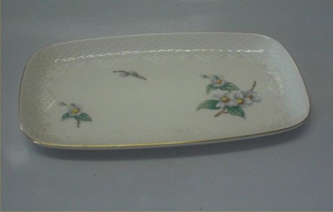 Beskrivelse: Bing & Grøndahl Heimdahl 096 Bakke, aflang 27 x 15 cm (364) - kremefarvet porcelæn med guldkant dekoreret med Jasmin - ikke at forveksle med Æbleblomst I fin og hel stand