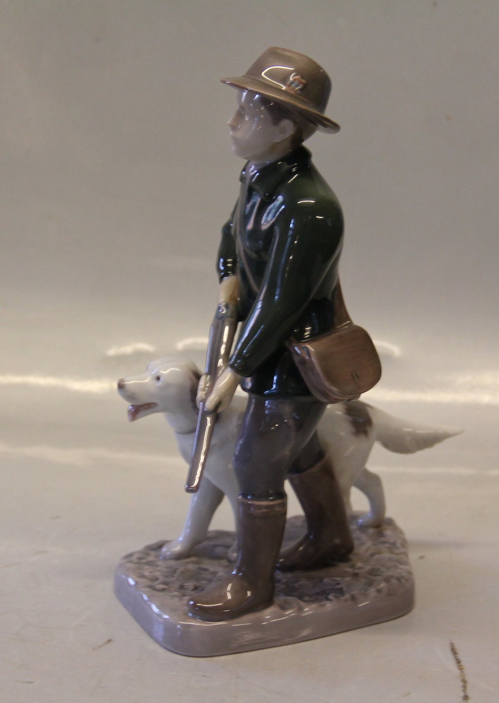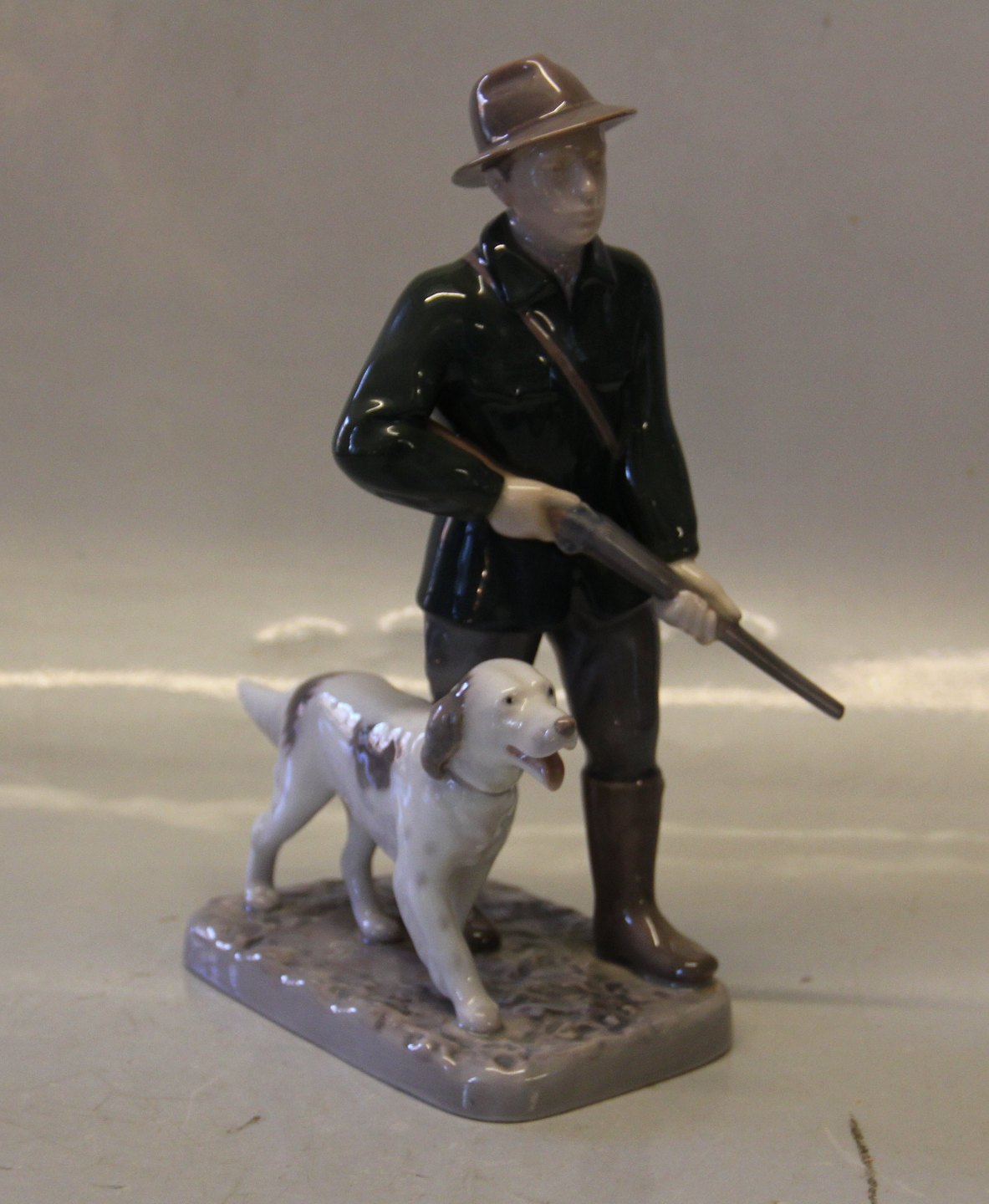 Beskrivelse: Bing & Grøndahl B&G 2328 Jæger med hund Svend Jespersen 29 cm 1. sortering I fin og hel stand.