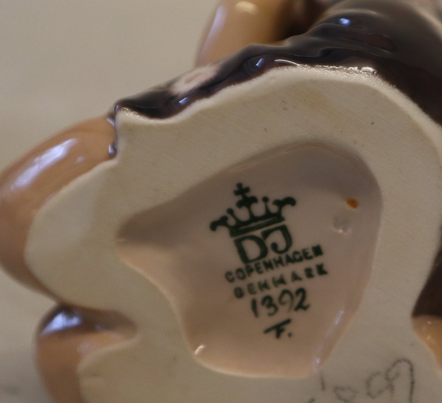 Beskrivelse: Dahl Jensen 1392 Lisa - girl (Johan Galster) Mørk kjole. Mærket med kongelig krone og DJ Copenhagen i hel og fin stand. 2 sortering