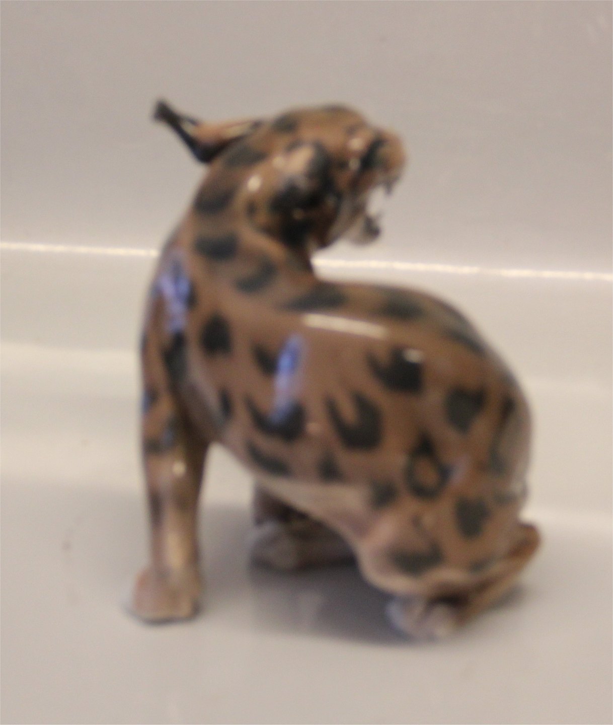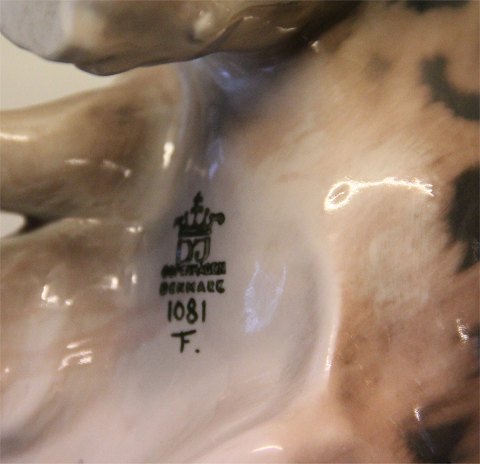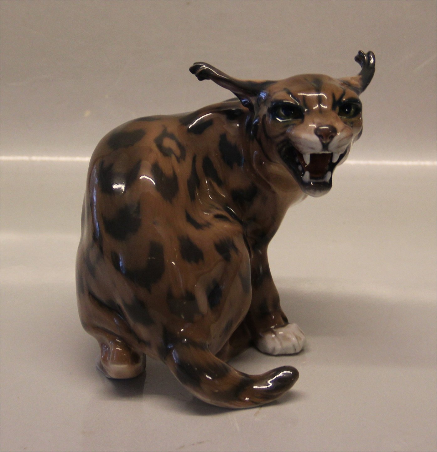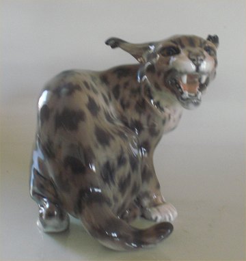 Dahl Jensen en af de store vilde katte; 1081 Hvæsende los (DJ) 16 cm. 2. sort Mærket med kongelig krone og DJ Copenhagen i hel og fin stand.