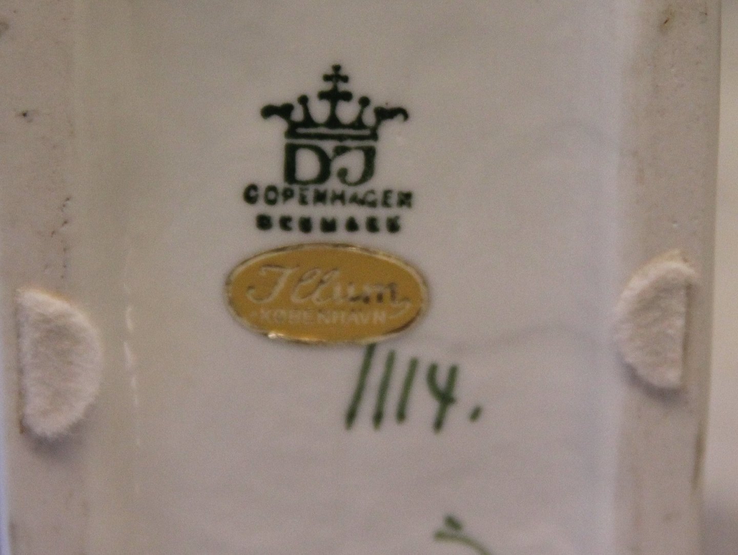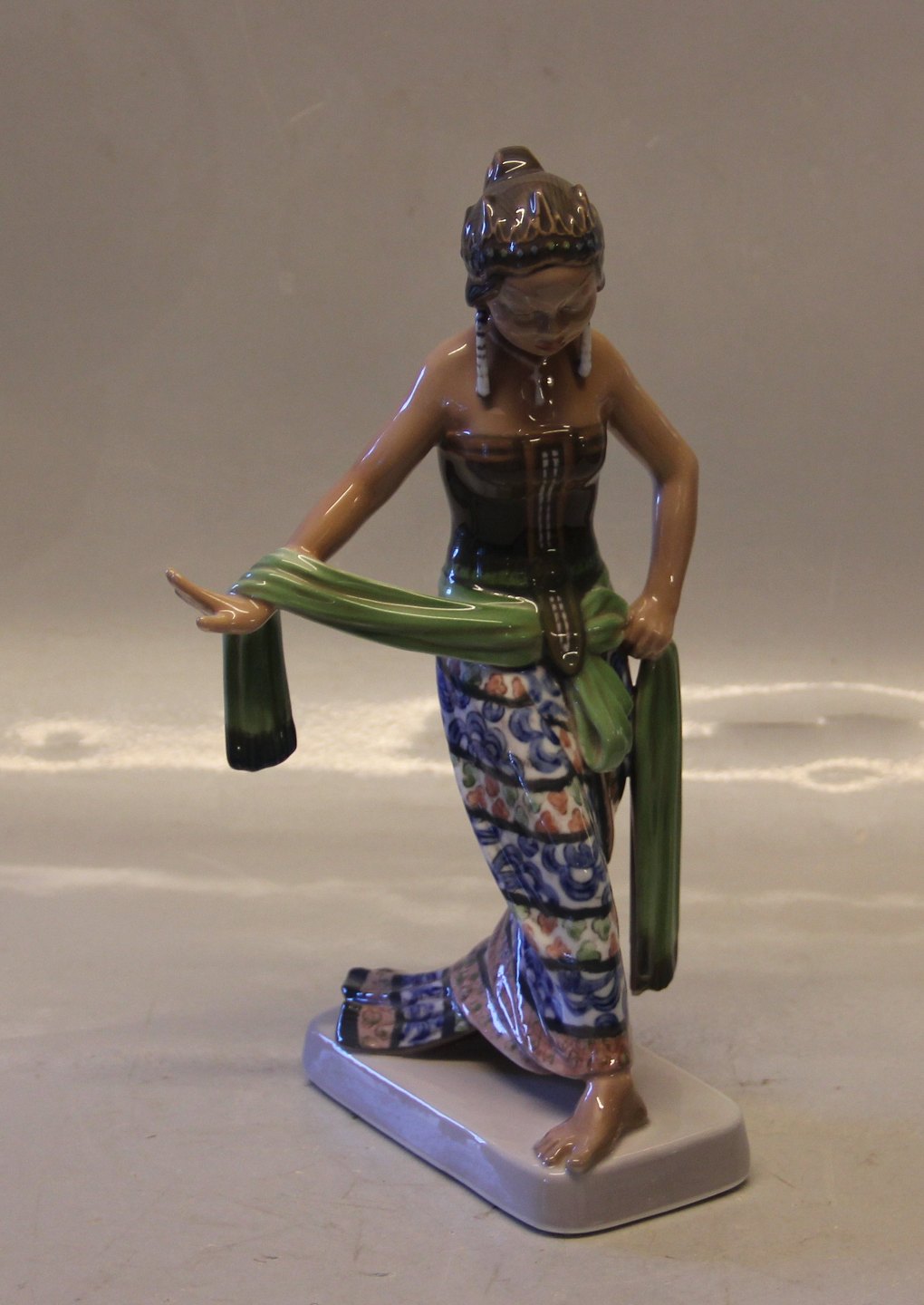 Beskrivelse: Dahl Jensen 1114 Javanesisk danserinde (DJ) 23,5 cm. Mærket med kongelig krone og DJ Copenhagen i hel og fin stand. 1. sortering