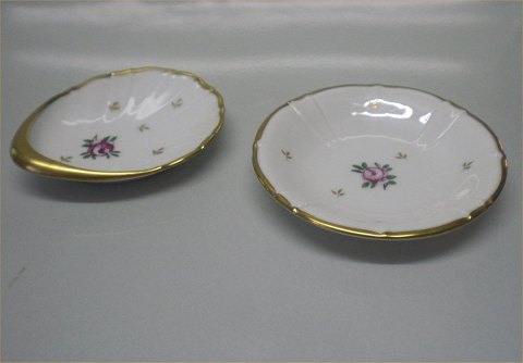Hvidt kantet porcelæn med bred guldkant og strøblomster i Henriette stil. Bing & Groendahl mønster på samme form som Offenbach I hel og fin stand