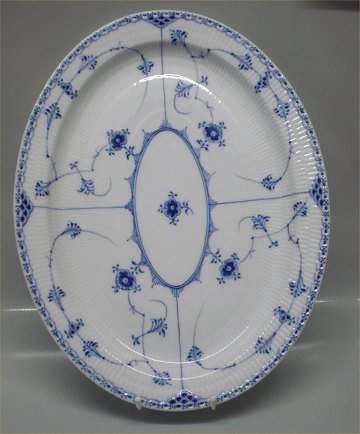 Beskrivelse: Kongelig Dansk Porcelæn Musselmalet Halv blonde 535-1 Stegefad 47 x 36,5 cm. I fin og hel stand Blue Fluted half lace