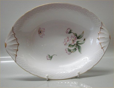 Beskrivelse: Bing & Grøndahl Macbeth Hvidt porcelæn, anemone, guldkant, form 356 195 Oval brødbakke 34 cm I fin og hel stand.