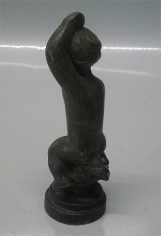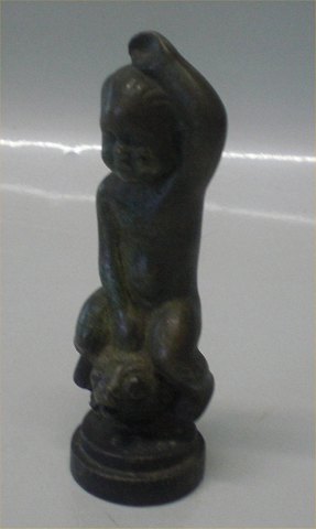Beskrivelse: Svend Lindhart Bronze - dreng på fisk 12 cm Svend Lindhart 1898-1989 (SL) Det ses at den er gammel - men en lækker lille figur