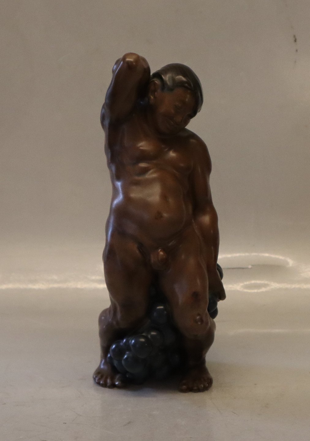 Beskrivelse: Bing & Grøndahl stentøj B&G 4025 Stående mand med druer Kai Nielsen 23 cm I fin og hel stand Bing & Groendahl