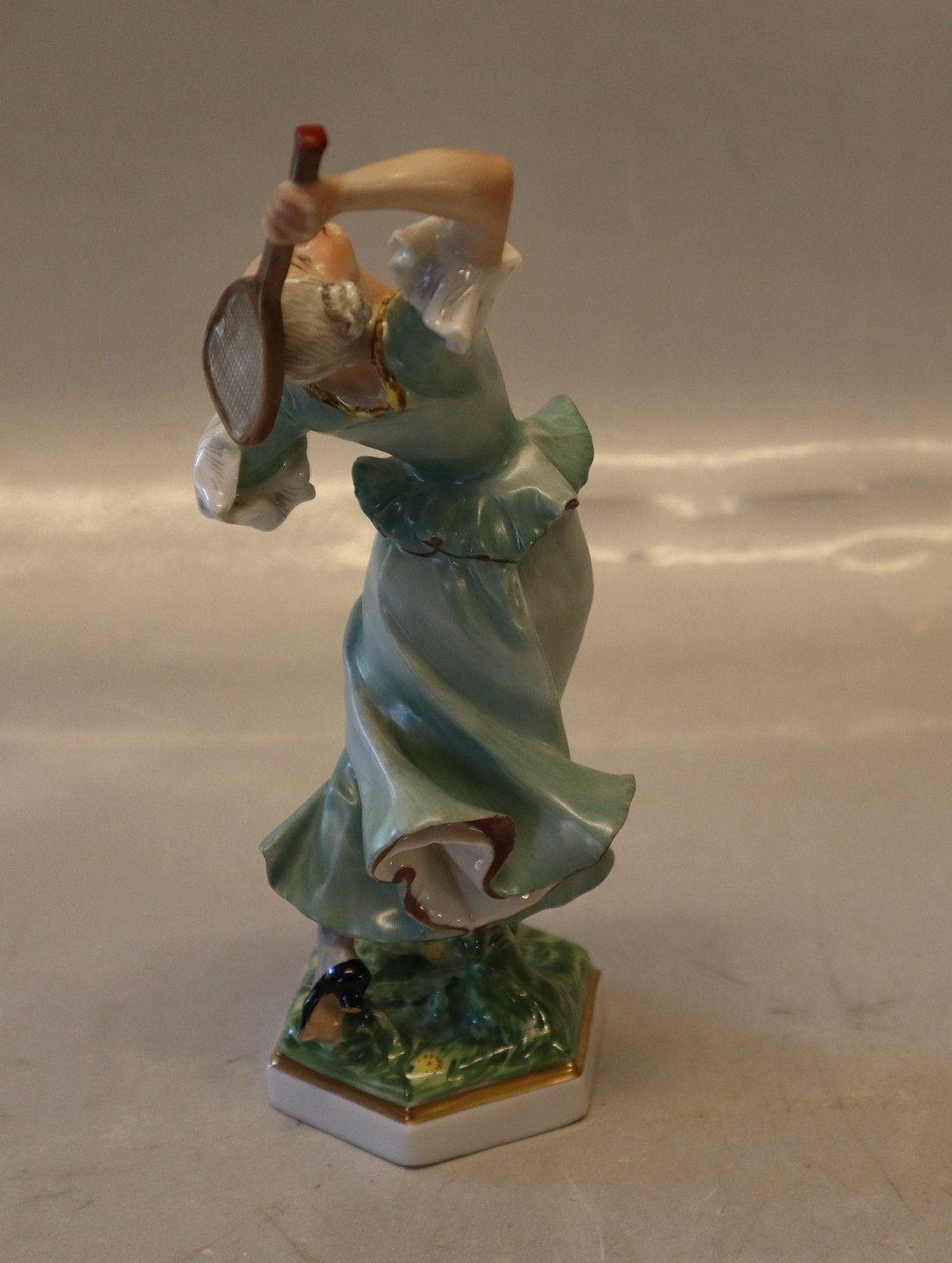 Beskrivelse: Bing & Grøndahl B&G 8031 Dame med ketcher 14,5 cm Hans Tegner 1853-1932 * Jens Jakob Bregnø 1877-1946