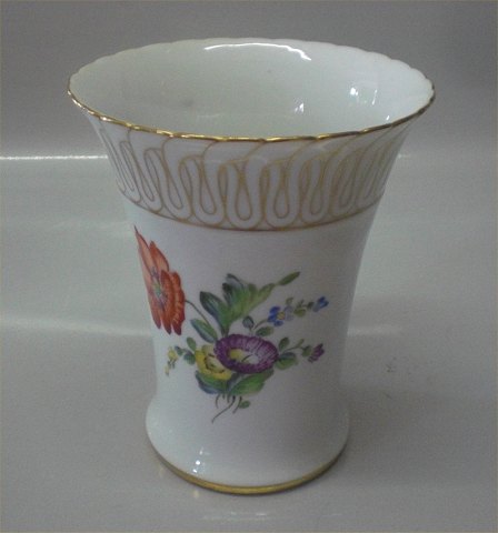 Beskrivelse: Bing & Grøndahl Saksisk Blomst på hvidt porcelæn 186 Vase flettet kant 16,5 cm (683) I fin og hel stand