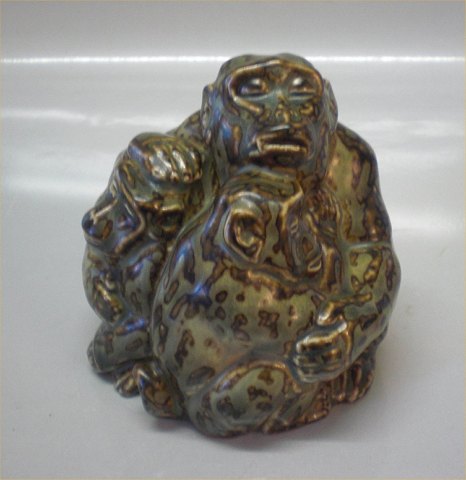 Beskrivelse: Royal Copenhagen stentøj 20191 Kgl. Abe med 2 unger 11 cm, Knud Kyhn, marts 1929 I fin og hel stand