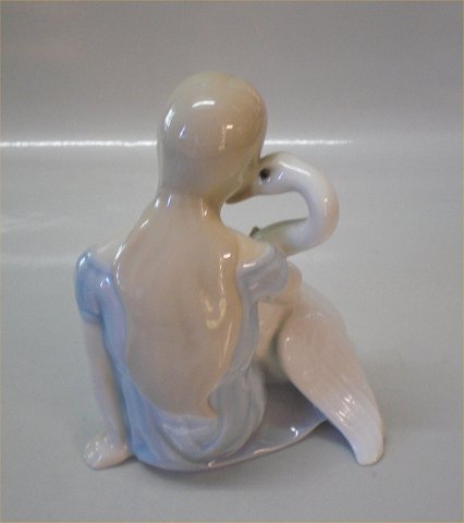 Beskrivelse: Bing & Grøndahl Art Nouveau FIgur B&G 2021 Pige med svane iført kongekrone - de vilde svaner 16,5 x 13 cm H.C. Andersen figurer 1. I fin og hel stand.