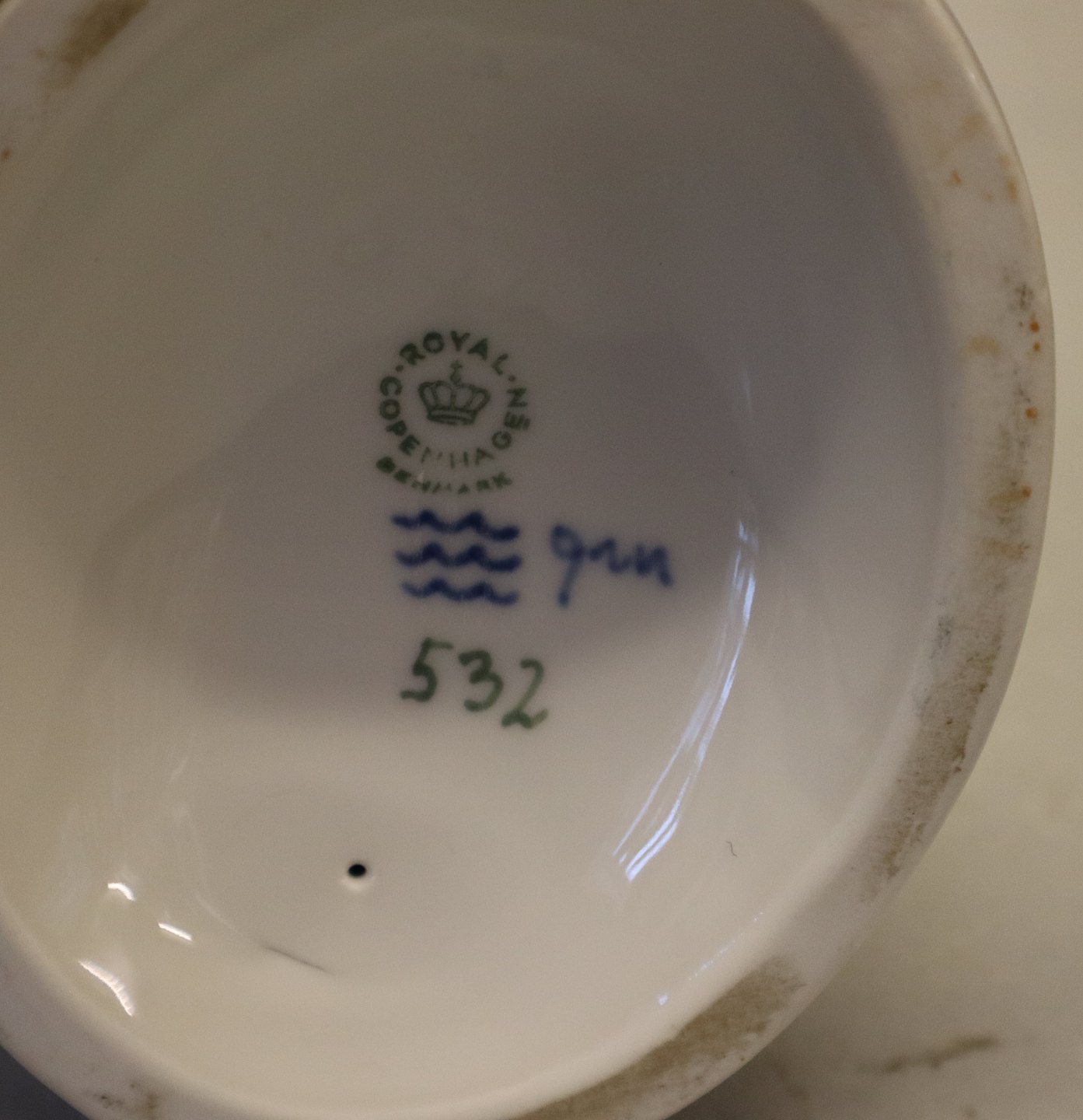 Beskrivelse: Kgl. fuglefigur fra Royal Copenhagen 532 Kgl. Hejre Th. Madsen 1903 27 x 12 cm (068) I hel og fin stand