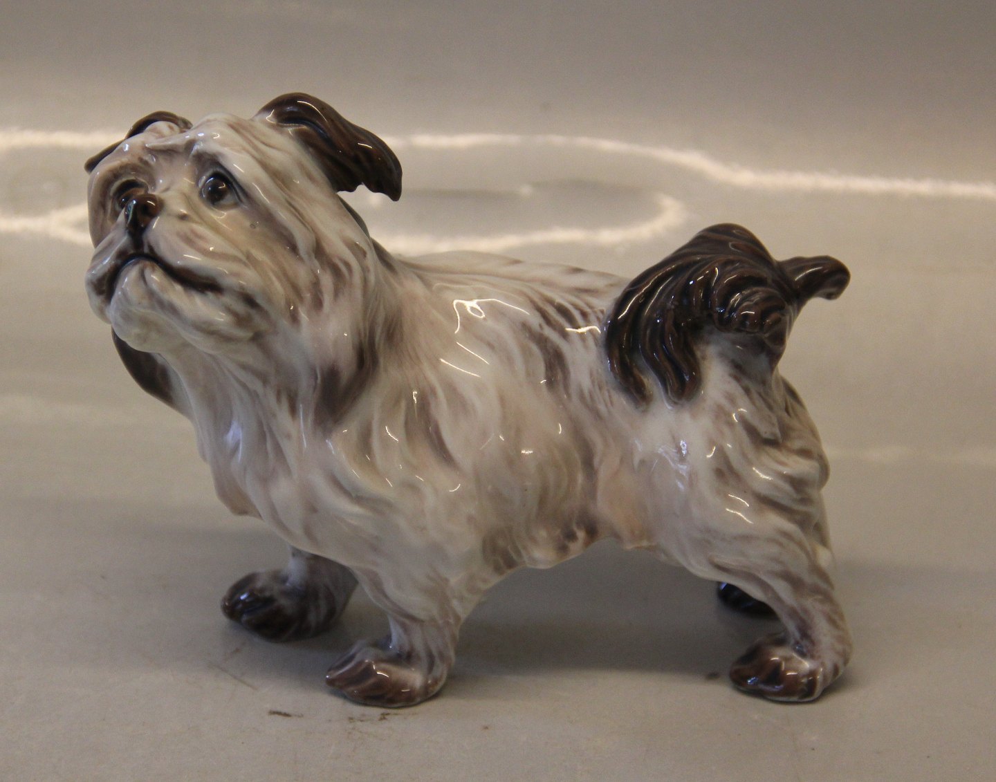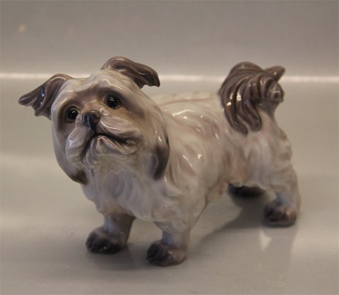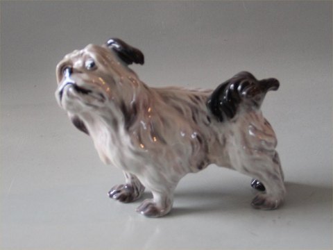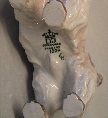 Beskrivelse: Dahl Jensen 1004 Diamond terrier, stående 13,5 cm (DJ). Mærket med kongelig krone og DJ Copenhagen i hel og fin stand.