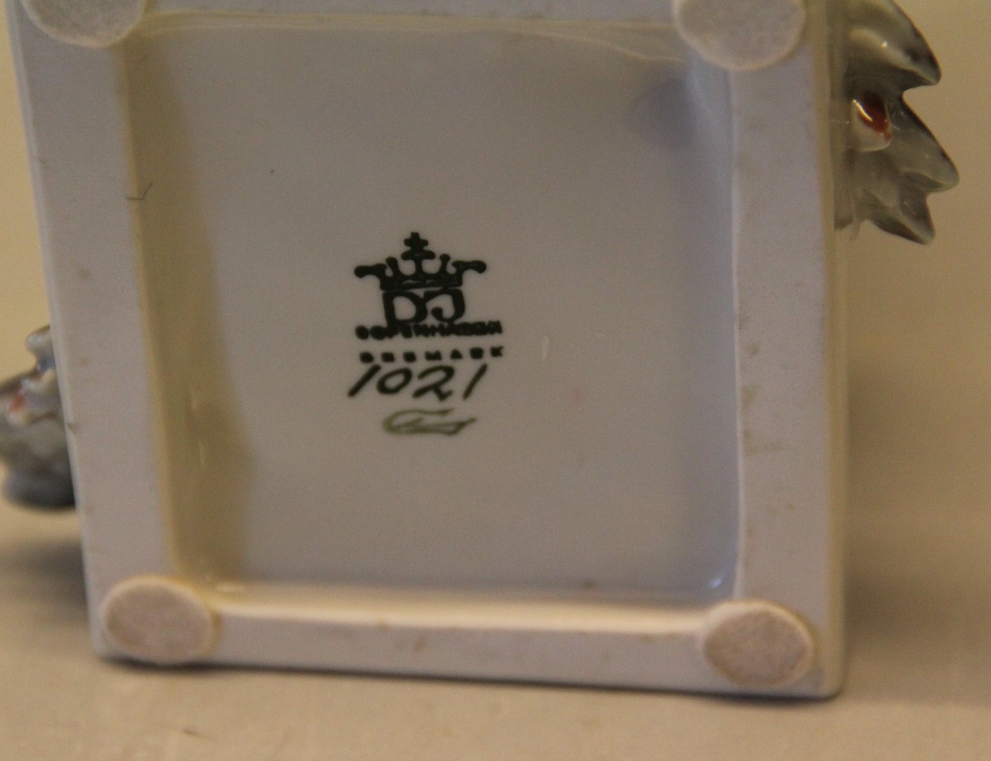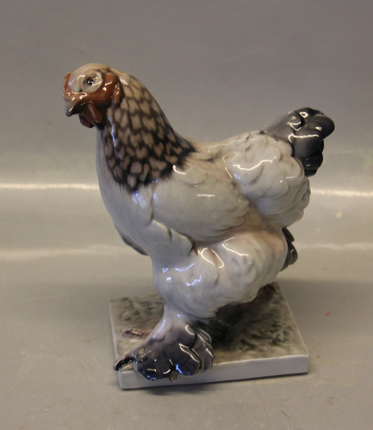 Beskrivelse: Dahl Jensen 1021 Brahmaputrahøne (DJ) 16 cm. Mærket med kongelig krone og DJ Copenhagen i hel og fin stand. Kylling