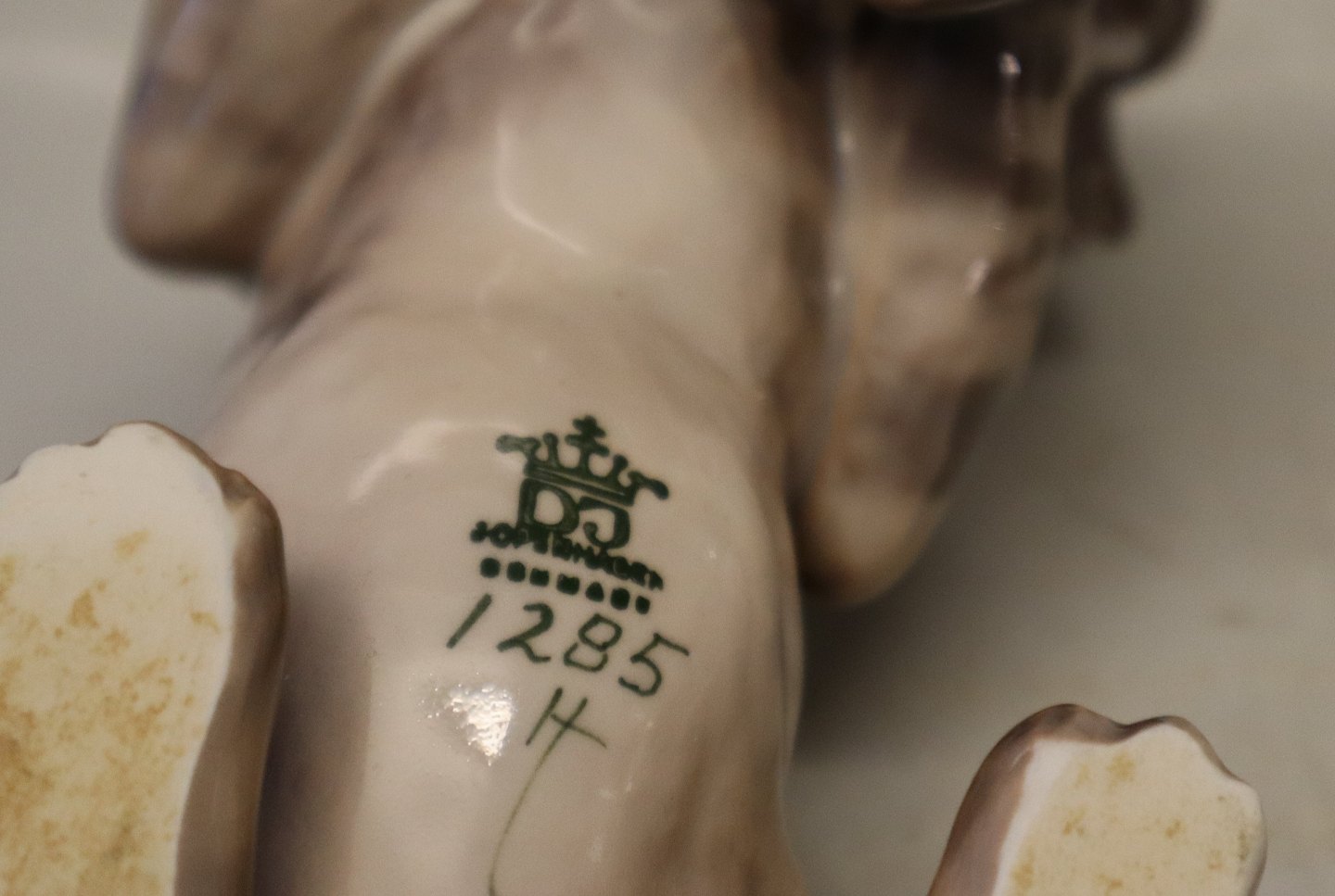 Beskrivelse: Dahl Jensen 1285 Tiger med dyrekølle 24,5 cm (Lauritz Jensen). 2. Mærket med kongelig krone og DJ Copenhagen i hel og fin stand.