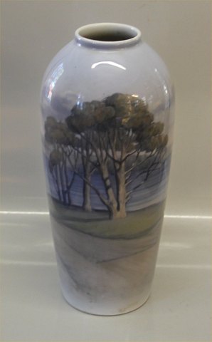 Beskrivelse: Bing & Grøndahl B&G 7387-14 Vase Flot skovdekoration 37 cm Signeret MH 2. I fin og hel stand