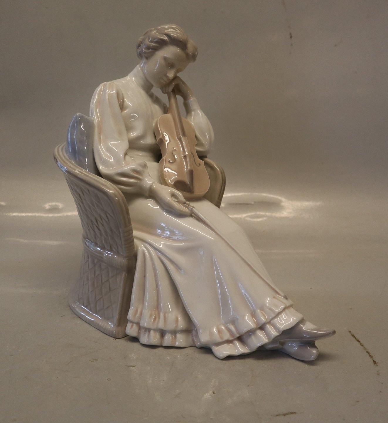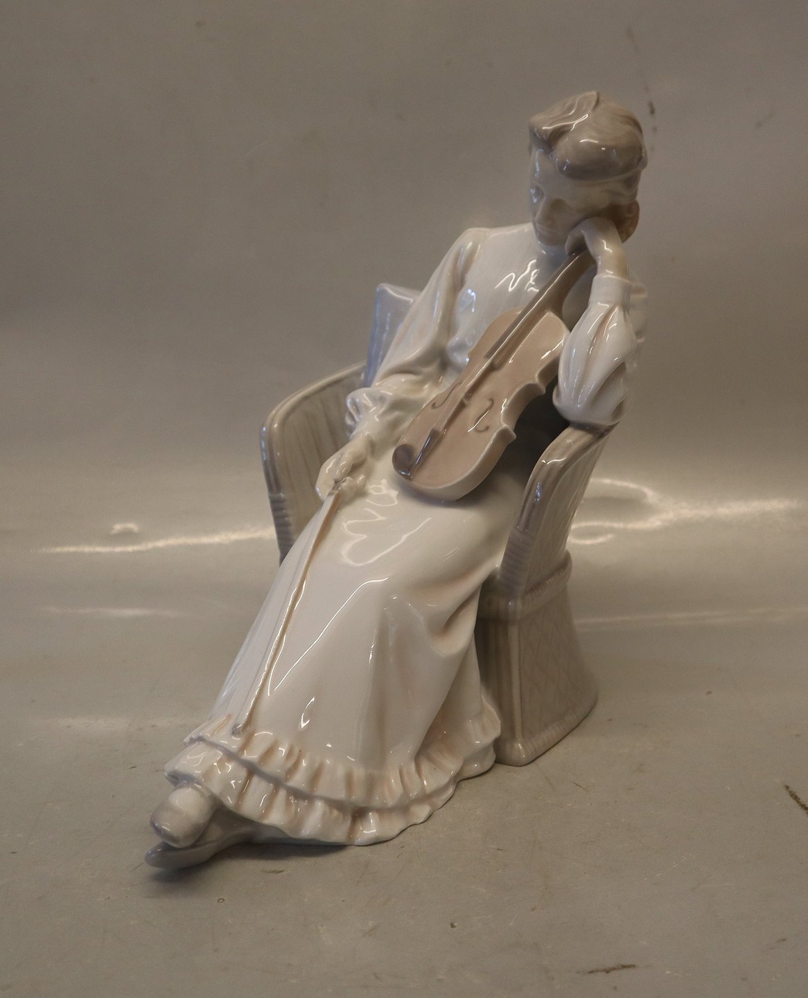 Bing & Grøndahl B&G 1729 Violinist 23 cm Dame i kurvestol med violin I fin og hel stand. Gammel Art Nouveau Violinspiller