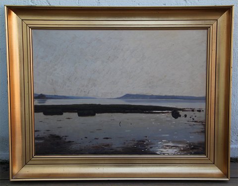 : Maleri i flot guldramme 65,5 x 83,5 cm Mariagerfjord Stenarmen