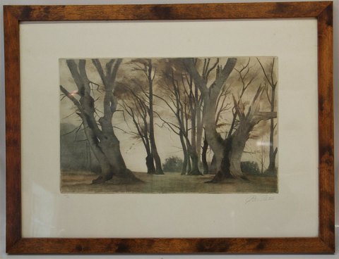 Peter Ilsted Opus 67 Farvemezzotinte Vinterlandskab