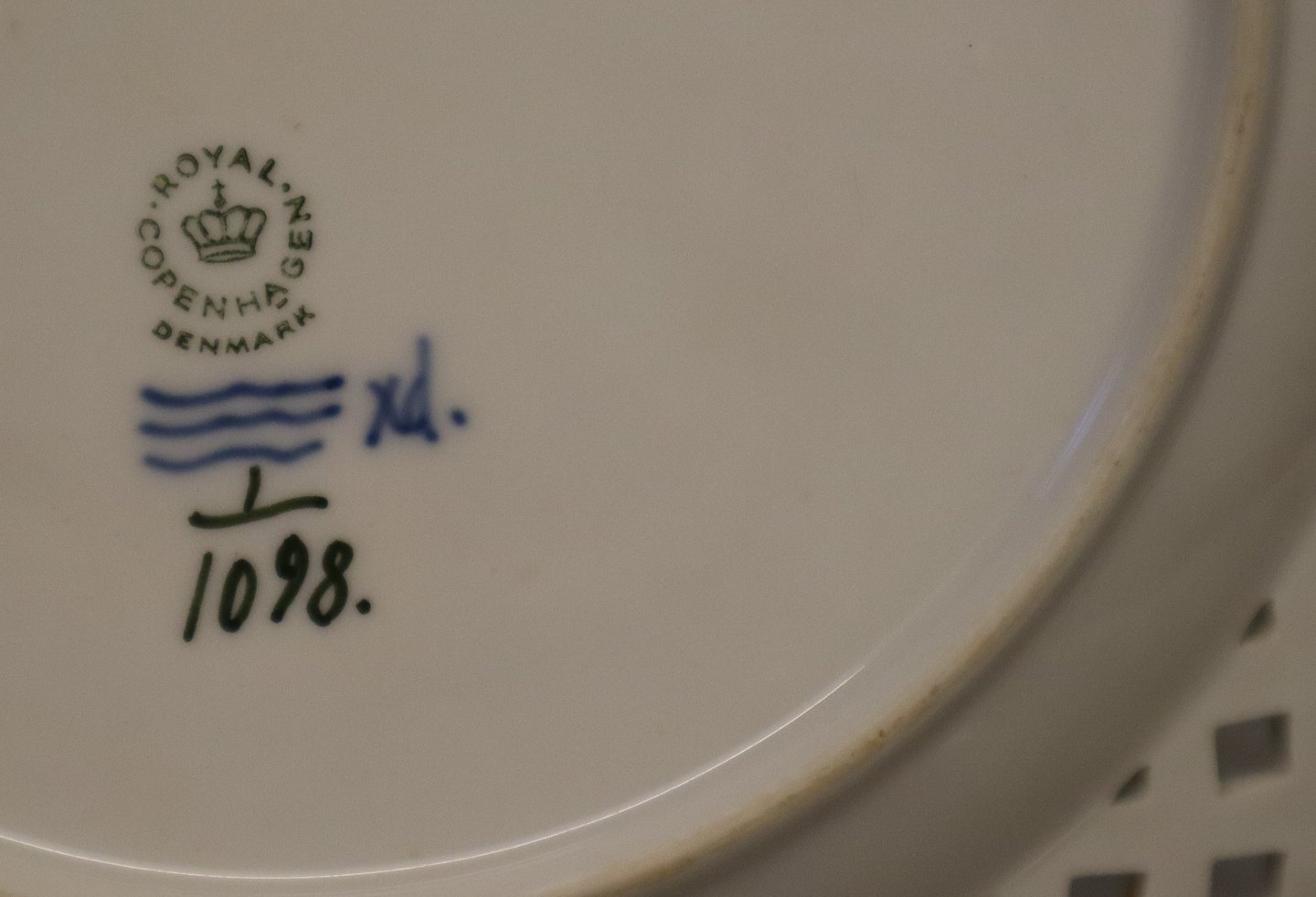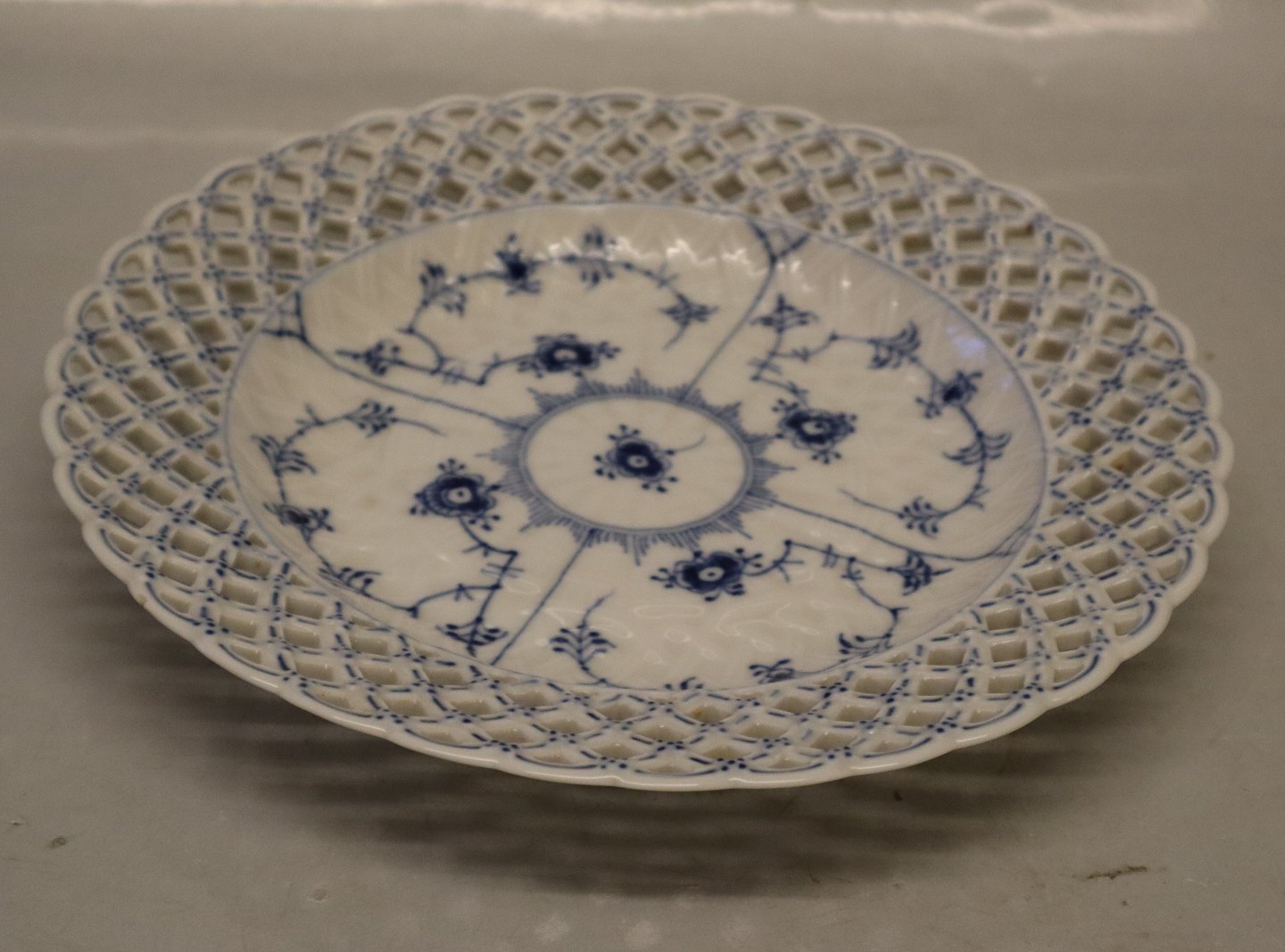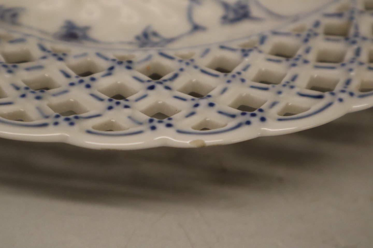 Kongelig Dansk Porcelæn Musselmalet Helblonde 1098-1 Tallerken med flettet kant 26 cm