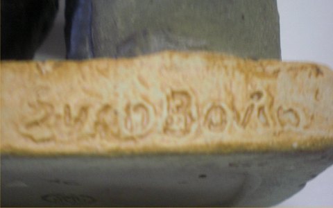 Beskrivelse: Bing & Grøndahl stentøj B&G 7061 Fisker 25 cm Signeret Sven Bovin Glaseret stentøj I fin og hel stand Bing & Groendahl