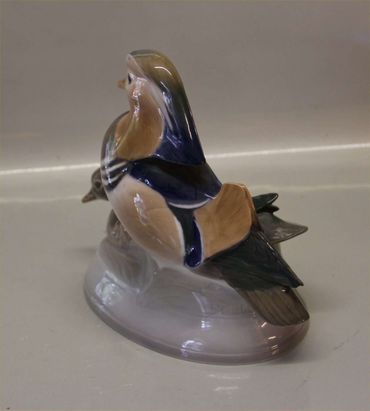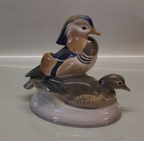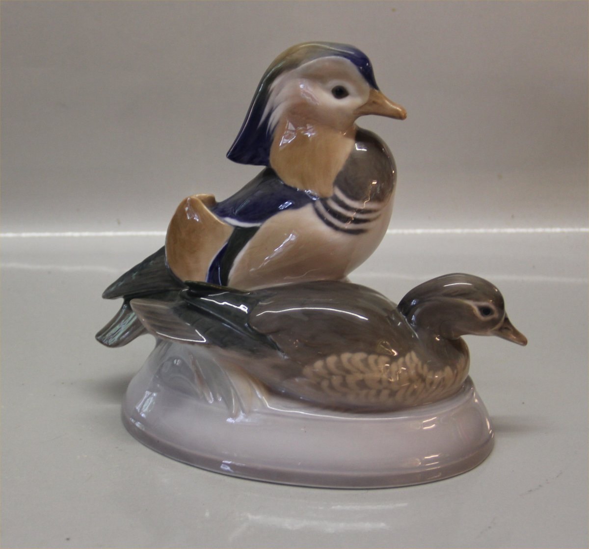 Beskrivelse: Kgl. fuglefigur fra Royal Copenhagen 1863 Kgl. Mandarinænder Peter Herold 1917 19 x 20 cm I hel og fin stand Andefugle
