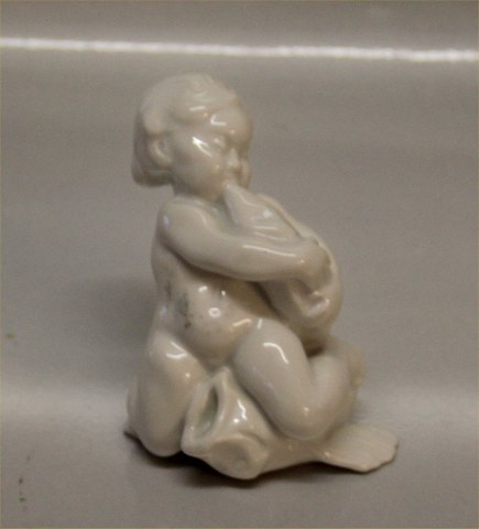 Beskrivelse: Bing & Grøndahl B&G 4038 Havbarn på fisk med fisk i favn 9 cm Hvid Kai Nielsen figur I fin og hel stand.