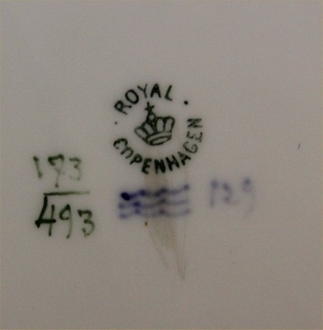 Beskrivelse: Kgl. fra Royal Copenhagen 173-493 Jardiniere Art Nouveau Skål 12 x 24 cm maler nr 123 Pre 1923 2.