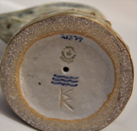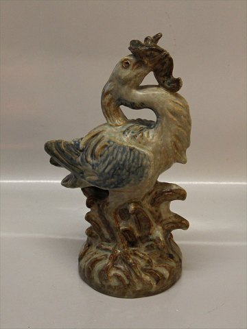 Beskrivelse: Royal Copenhagen stentøj 21379 Kgl. Hejre med fisk 30,5 cm Knud Kyhn Maj 1956 I fin og hel stand