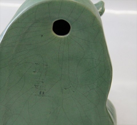 Beskrivelse: 375 VIII Ipsen Bjørnebogstøtter 17 cm Axel Sørensen før 1927 Denmark Keramik fra P. Ipsens Enke Kgl. Hof. Terracottafabrik 1843-1955 Jade Grøn glasur