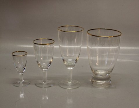 Kongeaa glasservice fra Lyngby glasværk. "Kongeå" glasset udgik af produktion. Guldkant og påtrykt mønster som også kendes fra spisestellet "Kongeå" fra tyske Bavaria.