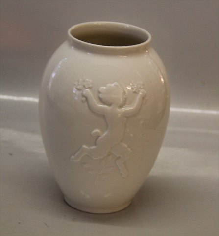 Beskrivelse: Kgl. 4119 Kgl. Vase ca 16 cm Faun og putti i relief Signeret HHH Hans Henrik Hansen fra Royal Copenhagen I hel og fin stand Blanc de Chine