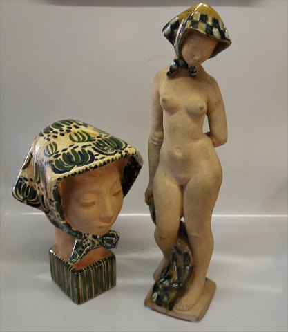 Dansk Stentøj Helge Christoffersen Nøgen kvinde 52 cm Chamotte og grøn glasur