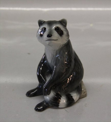 Beskrivelse: Kgl. figur 0053 Vaskebjørn, sidder og holder halen 10 cm Allan therkelsen fra Royal Copenhagen I hel og fin stand