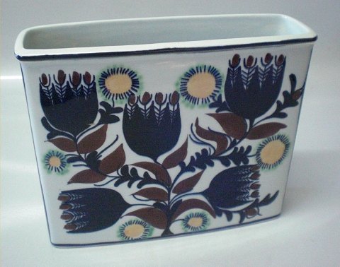 Aluminia kunstfajance 206-2942 Vase firkantet med blå blomster, Berte Jessen Design I.K 1961 15 x 18.5 x 6 cm Tenera