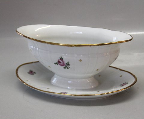 Beskrivelse: Bing & Grøndahl 008 Sovseskål med hank 11 x 24 cm 3,5 dl (311) Roselil Hvidt kantet porcelæn med bred guldkant og strøblomster i Henriette stil. Bing & Groendahl mønster på samme form som Offenbach I hel og fin stand