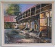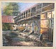 Beskrivelse: Mariager Maleri Museumsgården Mariager Bo Krank 74 x 84 cm - Kunne godt bruge en ny ramme - Super kavlitet