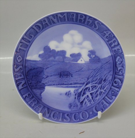 Beskrivelse: RC-CM144;1913: San Francisco – platte. Landskab med gård. I forgrunden en græssende ko. Indskrift: TIL DANMARKS ÆRE SAN FRANCISCO CAL. 1915 (jfr. kat. 155 og 157). Design: Arnold Krog , 1197 ekspl., 17,5 cm