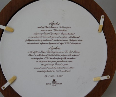 Beskrivelse: Kgl. Motiv 5 AGalea malt af Carl Larsson i 1906 Rund Carl Larsson porcelænsplatte i træramme26 cm fra Royal Copenhagen Begrænset oplag nr. Nr 3042 Af 9500 I hel og fin stand Brugsspor på rammen