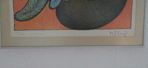 Beskrivelse: Henry Heerup Litografi "Svanen" Signeret og nummereret 251 af 500. Original grafik i aluramme 51 x 38 cm