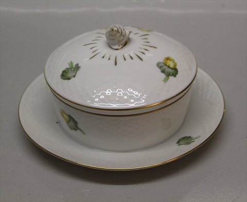 Beskrivelse: Bing & Grøndahl Erantis 196 Smørdåse på fod med snegl på låg 0,25 kg (582) Smørboks