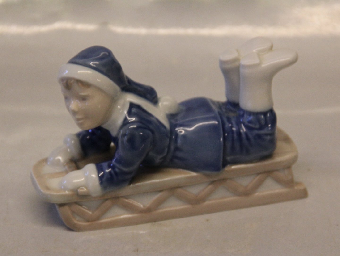 Beskrivelse: Kgl. figur fra Royal Copenhagen 5659 Kgl. Pige på kælk 8 x 12,5 cm Sterett Kelsey I hel og fin stand Sterrett