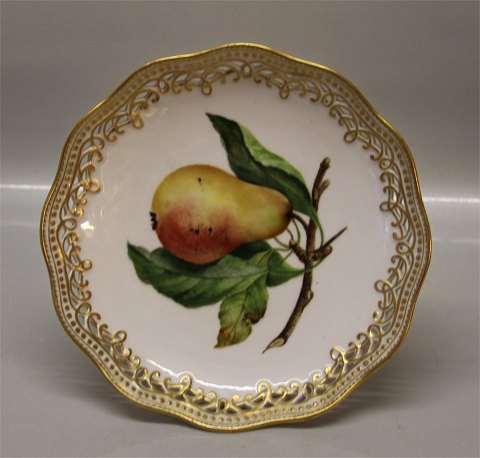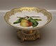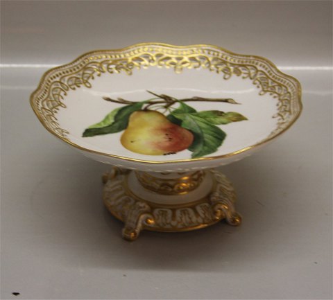 Kongelig Dansk 429-3586 Gl. Juliane Marie Konfektskål på høj fod decoreret med frugtgren med pære og guld i Flora Danica stil 10 x 20 cm (før 1900) maler #23