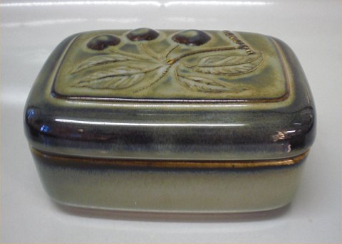 B&G 7000 ? Grønglaseret smørboks med låg - kirsebær i releif 7 x 15 cm Smørboks, Smørdåse Smørskål Ej på lager
