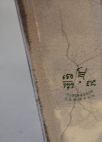 Beskrivelse: Royal Copenhagen Aluminia fajance RC Aluminia 650-472 Firkantet blomsterkasse 13.5 x 22 cm (Sloth-Møller 1907) Aldersslitage