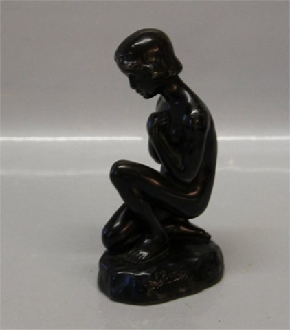 Beskrivelse: Just Andersen D 2017 Disko Elna Borch Siddende nøgen pige. Patina og brugsspor H 17 cm 9 cm dyb