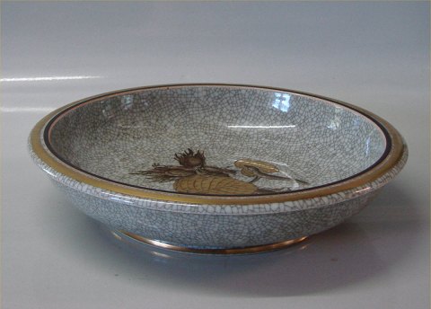 Kongelig Dansk Craquelé, Craquele 702-3606 Kgl. Skål 25 cm gul dekoreret med hasselnød