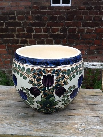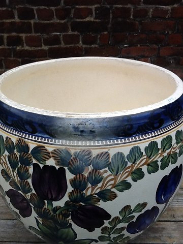 Beskrivelse: Kolonorm Kæmpe Royal Copenhagen Aluminia fajance Blomsterkumme 43 x 45 cm diameter øverst. Nummeringen er utydelig - Dekorationsnummer 861 eller 867 - formnr. 662